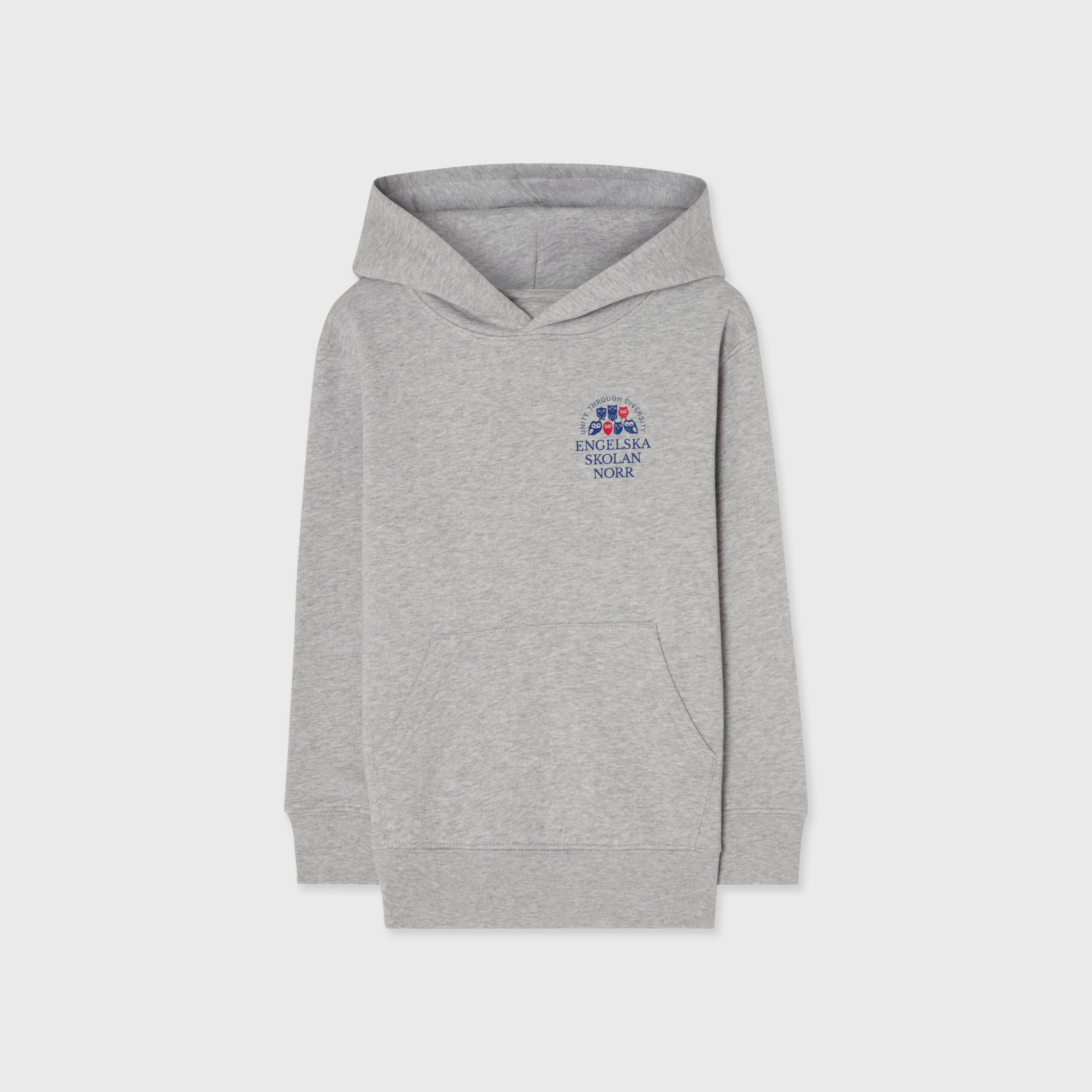 Grå hood med Engelska skolan norr logotyp på vänster bröst.