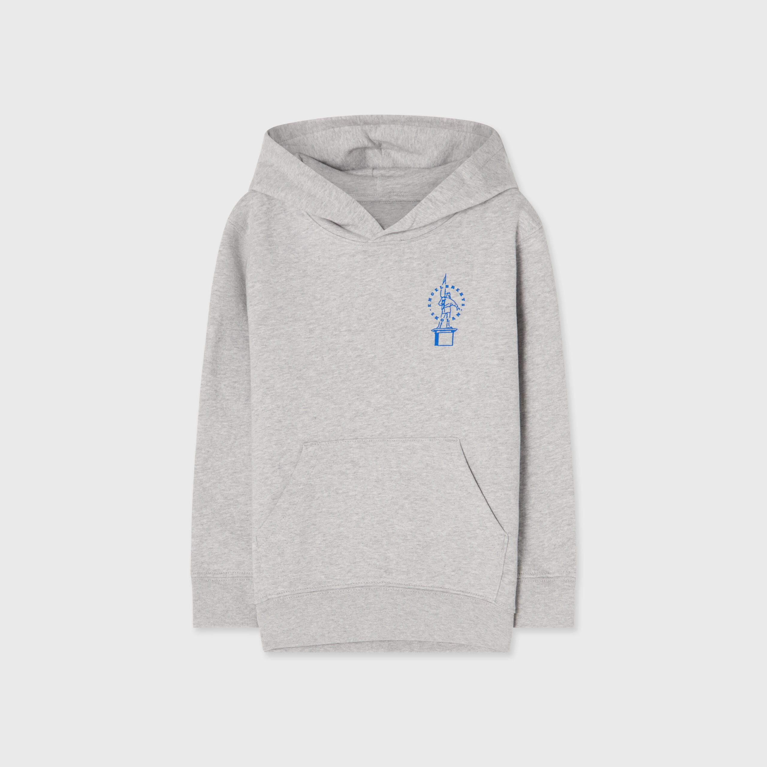 Grå hood med Engelbrektsskolans logotyp på vänster bröst.
