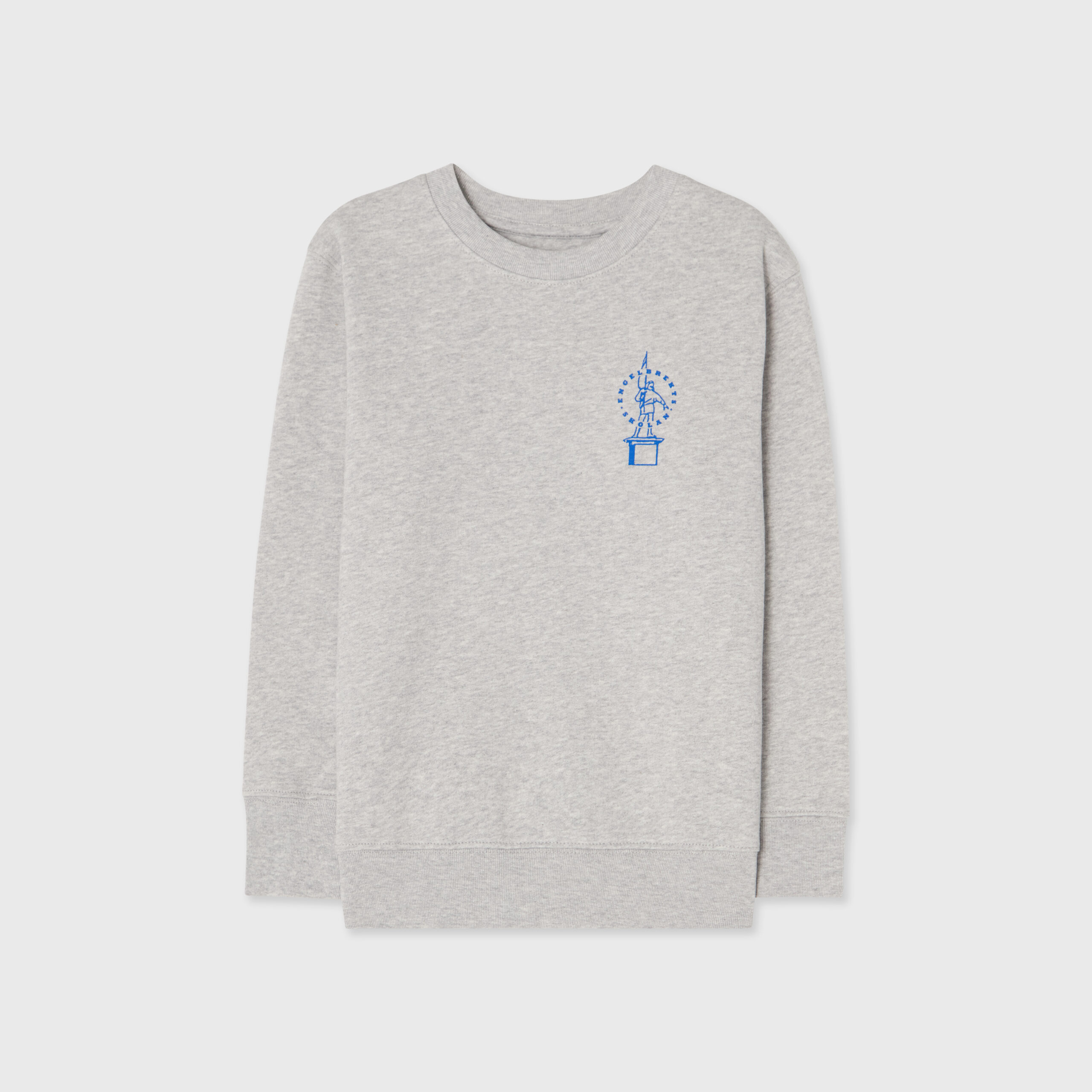 Grå sweatshirt med Engelbrektsskolans logotyp på vänster bröst.